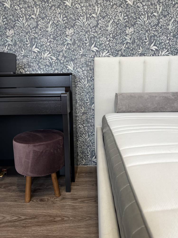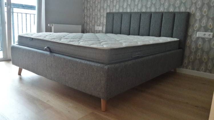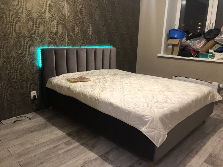 Прекрасная кровать. Нам очень нравится! По цвету и фактуре обивки могу сказать что дизайн стильный и лаконичный и что главное вне времени. Высота ножек как раз позволяет там убирать пыль роботу пылесосу.