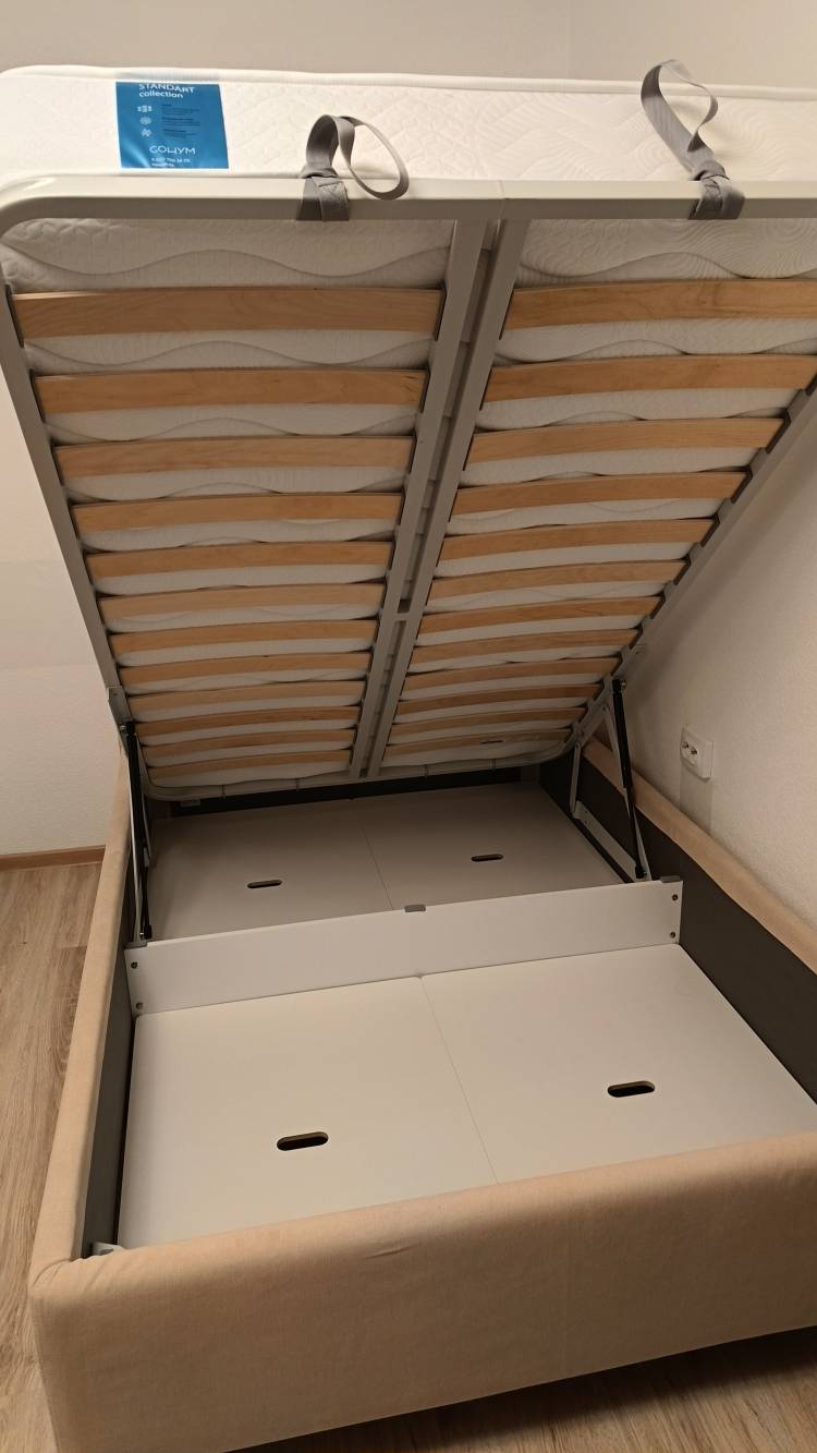 - Дополнительно можно заказать подъемный механизм и бельевой ящик (глубина ящика составляет 14 см), чтобы использовать место под кроватью для хранения. Дно бельевого ящика легко сдвигается для обеспечения уборки под кроватью.